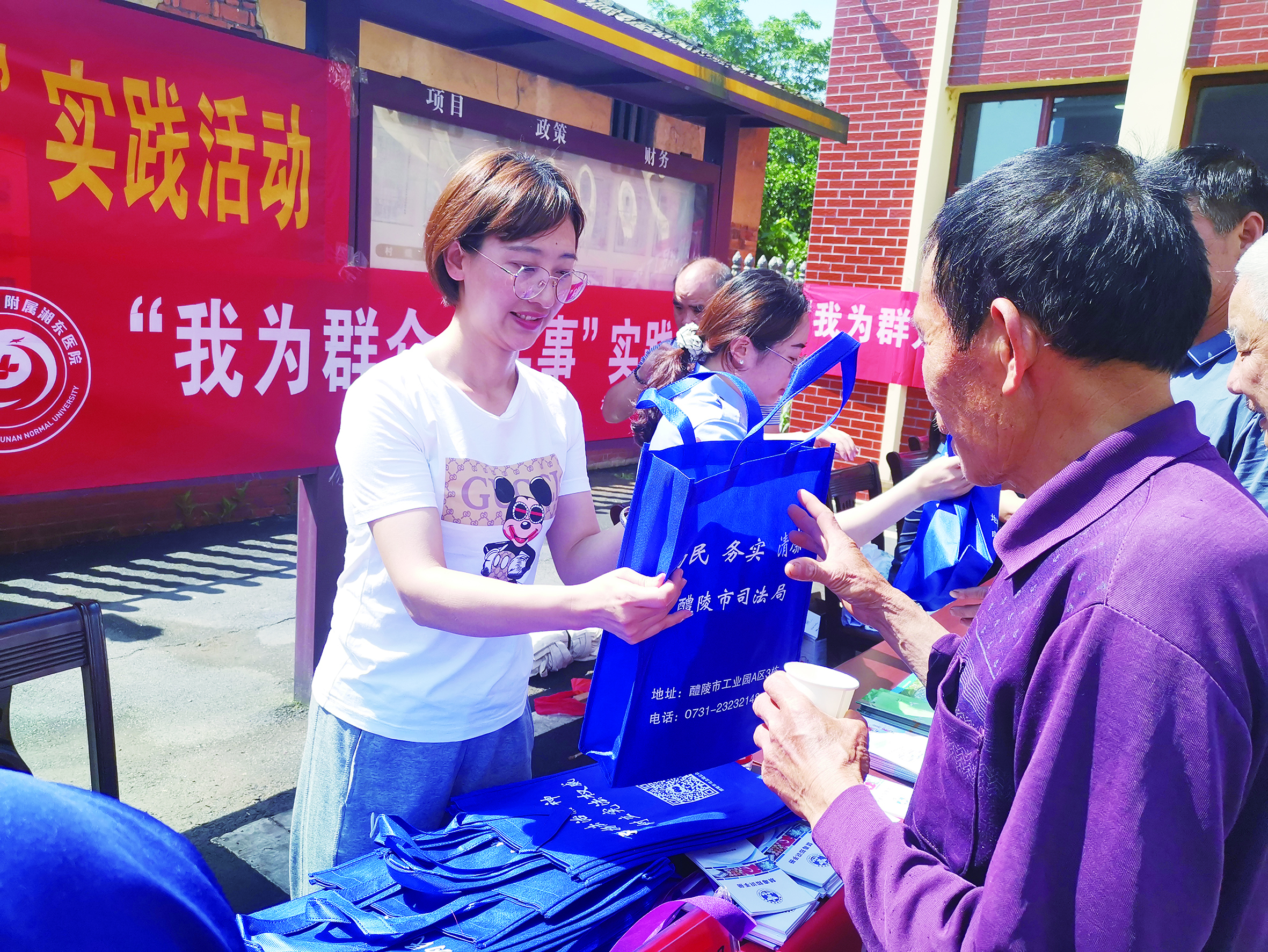 5月26日,在醴陵市泗汾镇何田社区开展法治宣传、法律咨询、义诊等“我为群众办实事”实践活动。