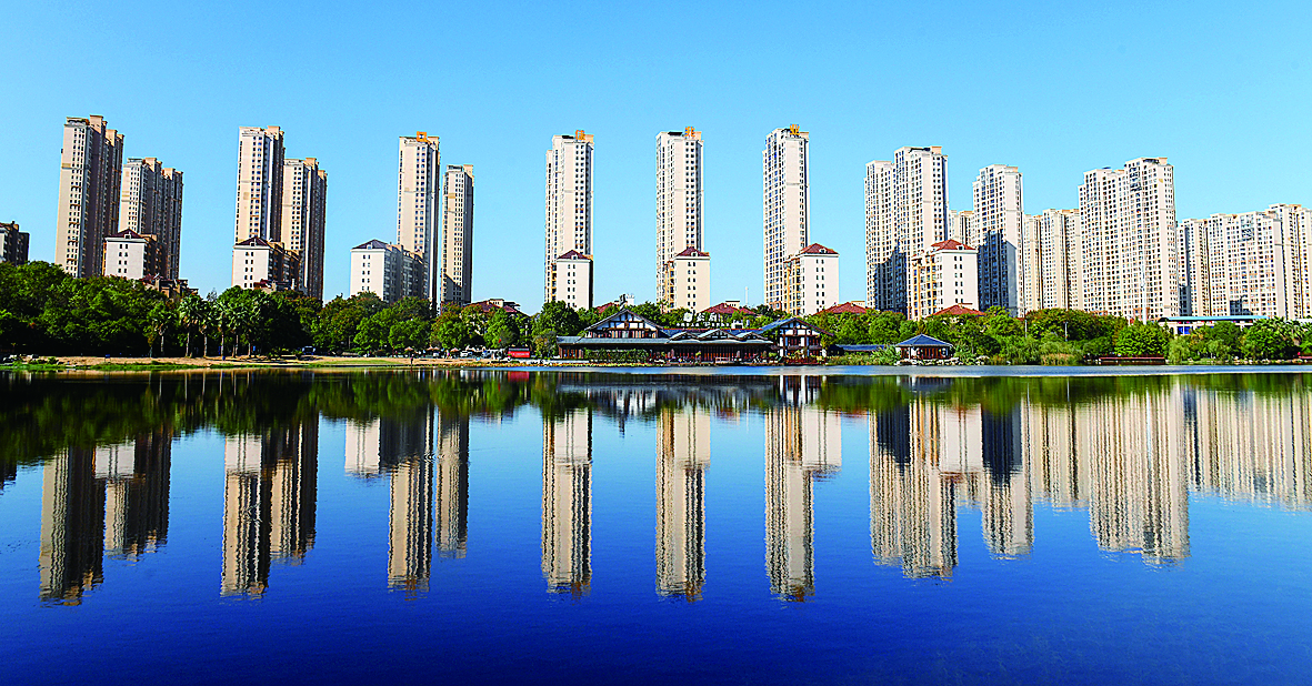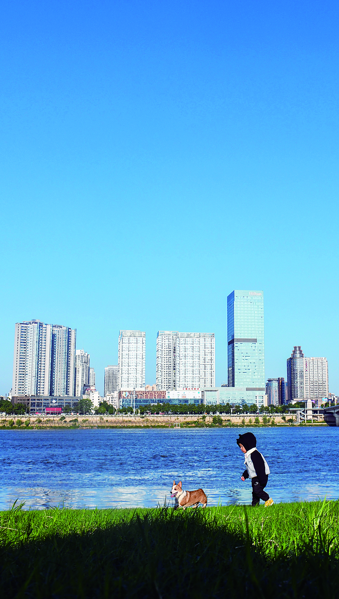 在栗雨公园,蓝蓝的天空和整齐的居民楼一并倒映在湖中的景象,恍如海市蜃楼。住在附近的市民每天在这里环湖晨跑,然后精神饱满的去上班。带孙辈的老人们,则在这里晒晒太阳看看景,享受天伦之乐。