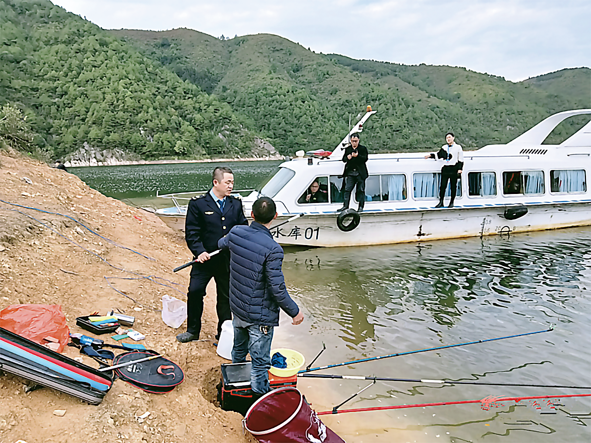 日前,茶陵县组织公安局、农业农村局、交通运输局、洮水水库管理局、桃坑乡政府等部门,在洮水水库开展安全生产百日大会战非法垂钓专项整治行动。