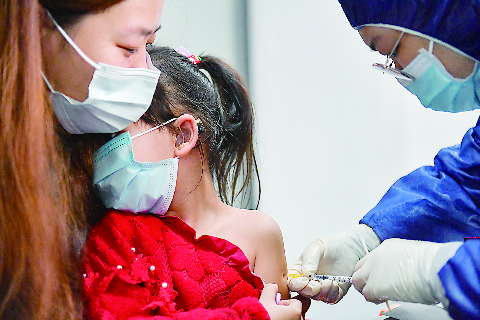 11月15日,在长沙市天心区坡子街街道社区卫生服务中心,小朋友在家长的陪同下接种新冠疫苗。 近期,湖南省长沙市有序开展3至11岁人群新冠疫苗接种工作。 新华社记者 陈泽国 摄