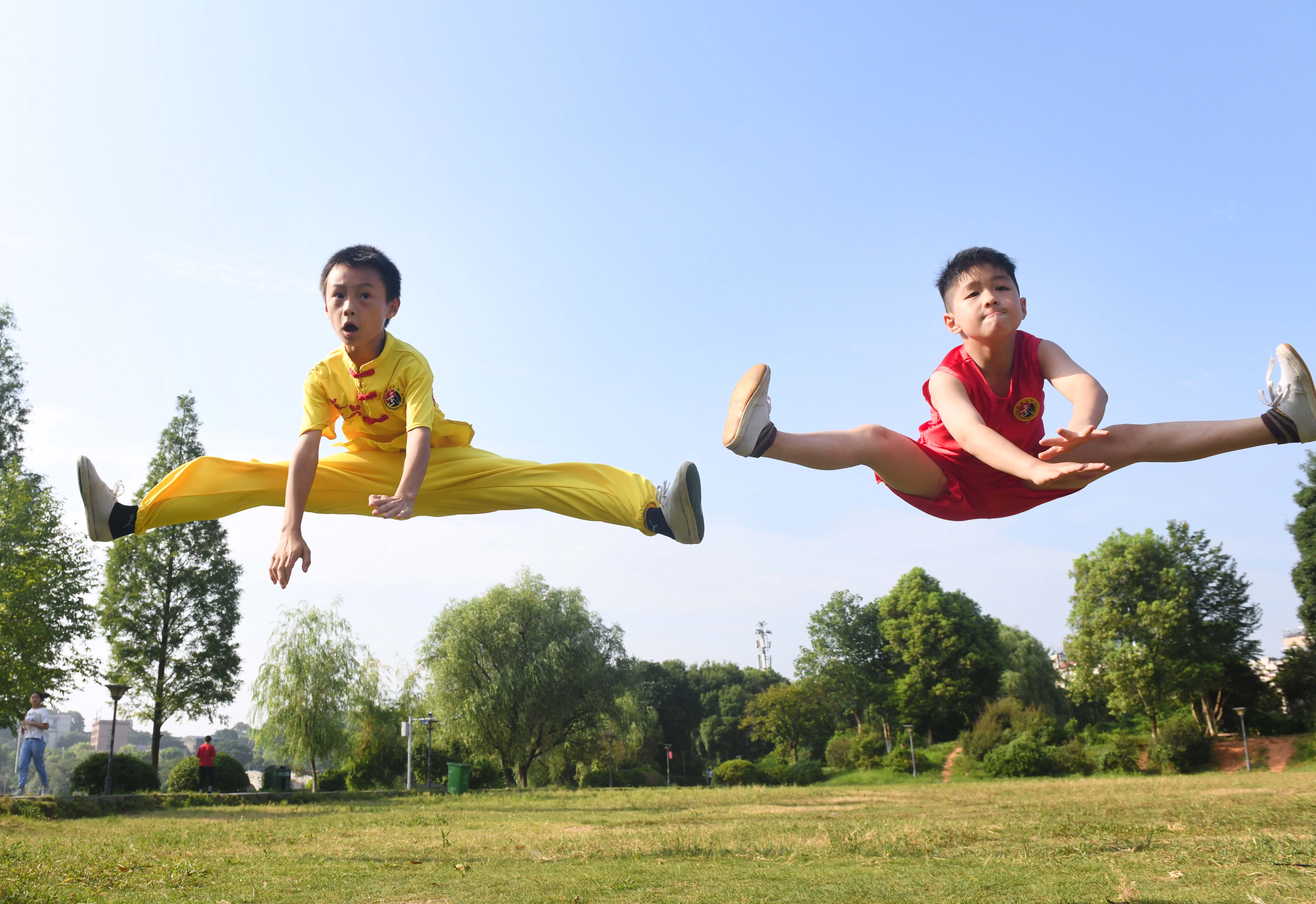近年来,传统武术受到越来越多的家长和孩子的热捧。在株洲城区,武术培训学校也明显多了起来。市民张先生说,让孩子来学习武术是想练习他的定力和专注力,以及不怕苦、坚韧不拔、遇到困难不退缩的精神品质。图为孩子们在展示空中分腿。