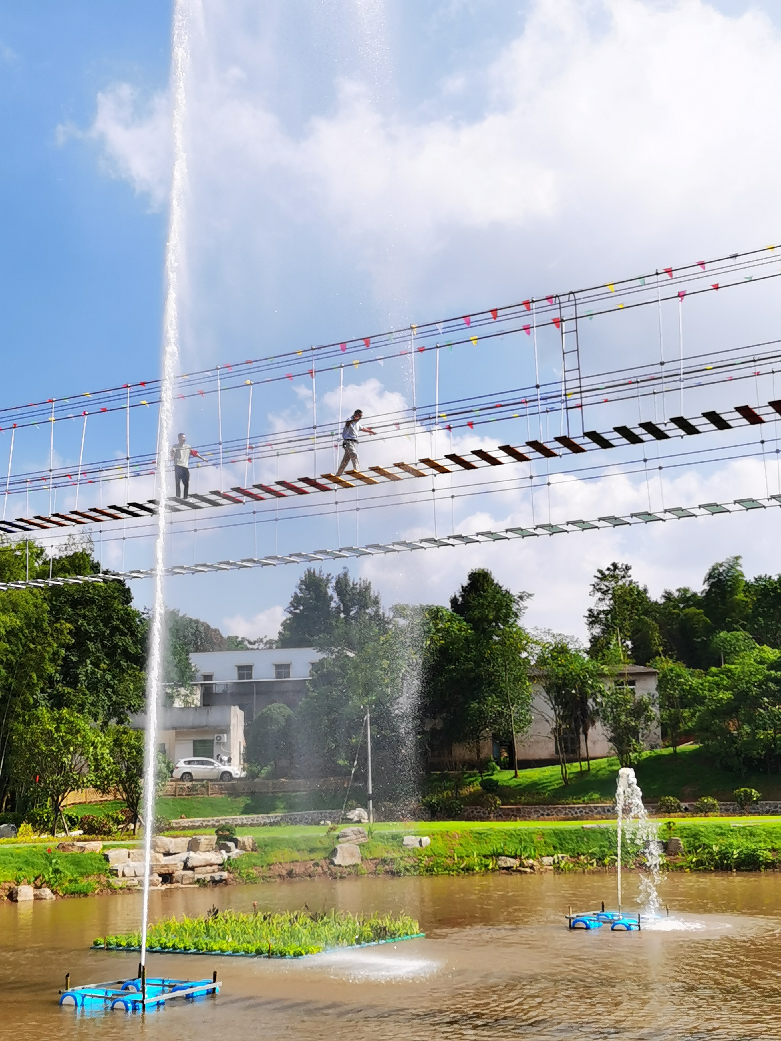 ▶游客一边观赏茅太渠,一边体验“步步惊心”桥。通讯员供图