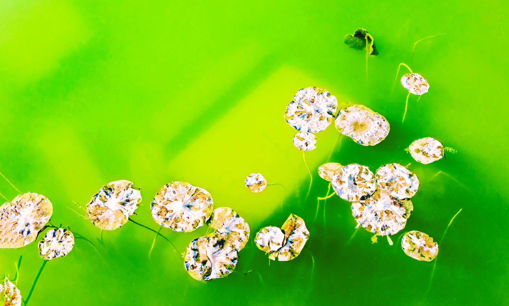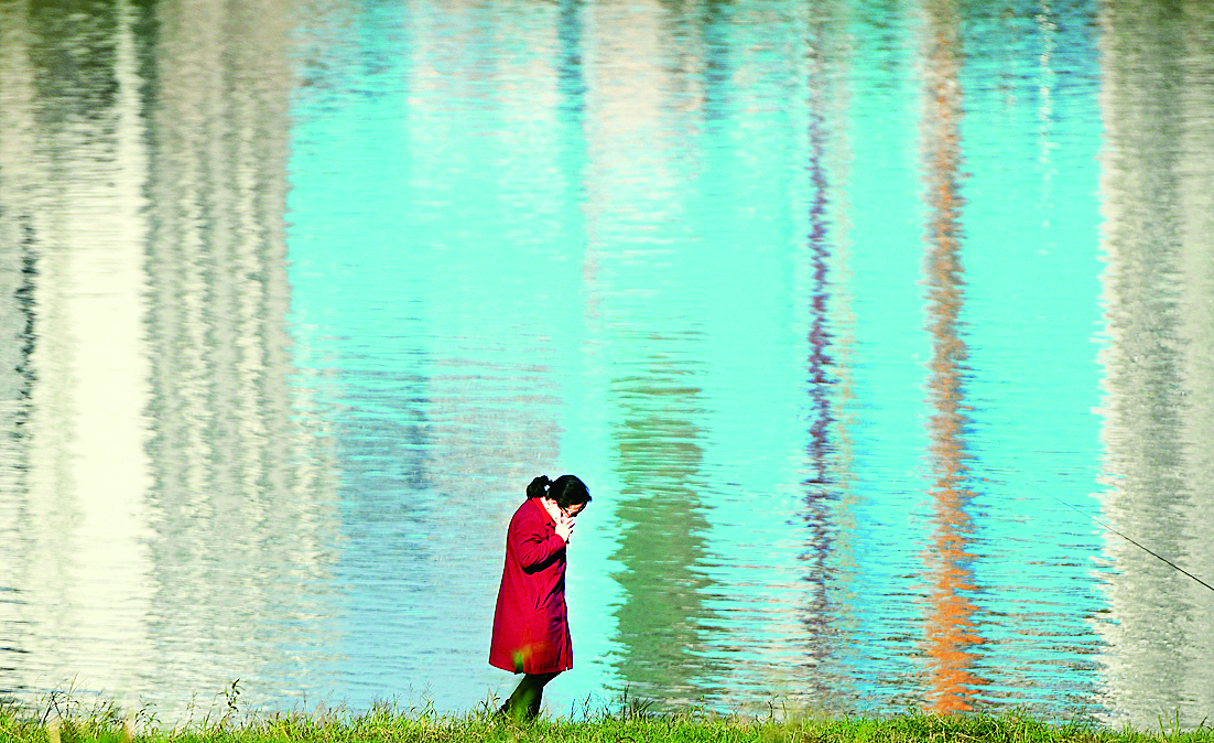 初冬,仙庾岭池塘中的残荷。夏正湘 摄