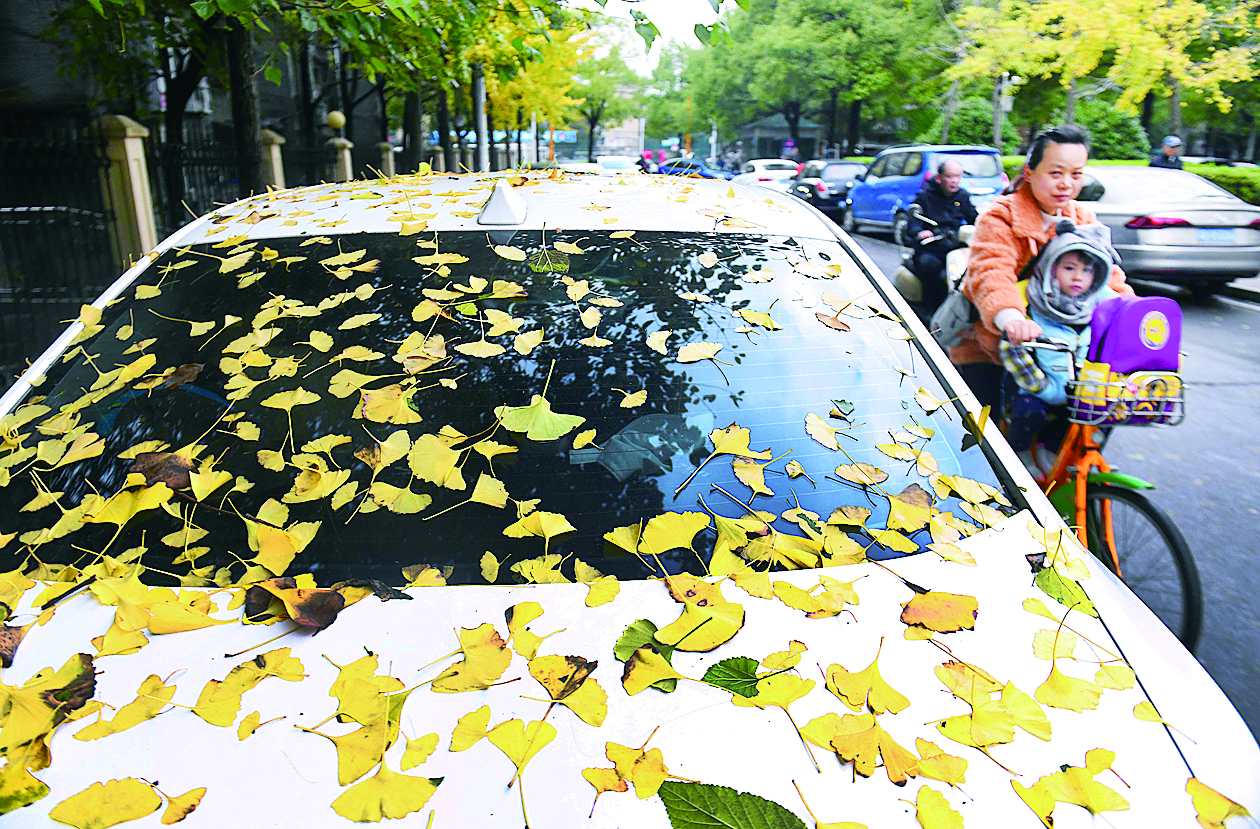 钻石路,飘落在车上的银杏叶成了一道独特的景色。