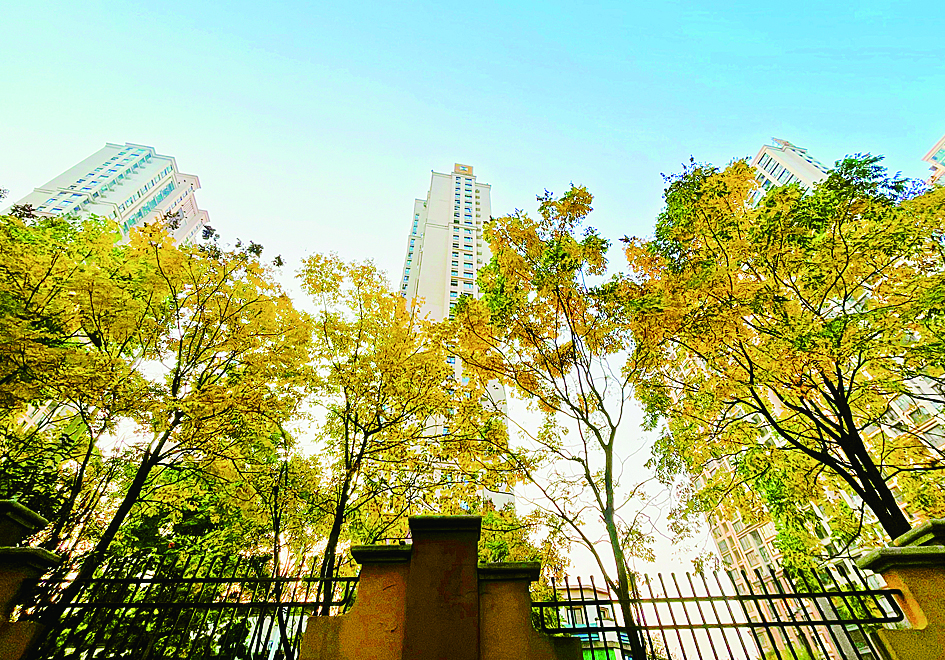 佳兆业小区的金色树叶。