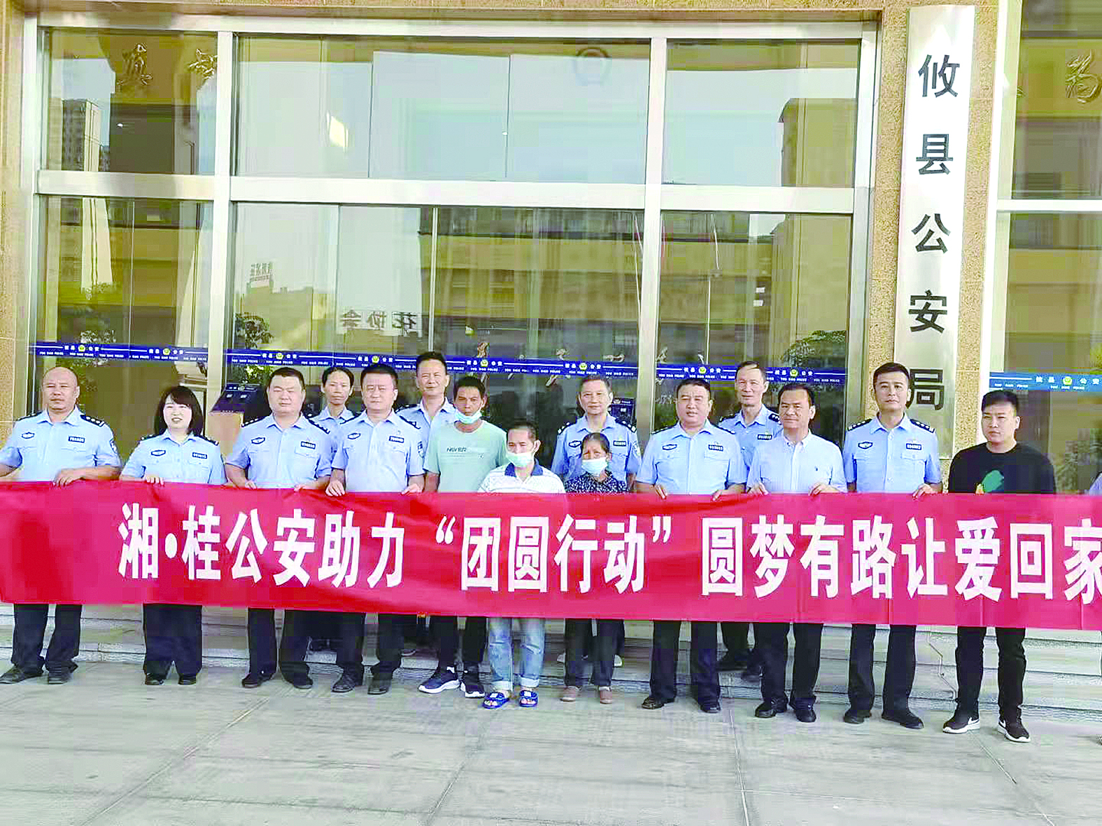 湘桂公安和走失人员黄某及其家属合影。攸县公安局供图