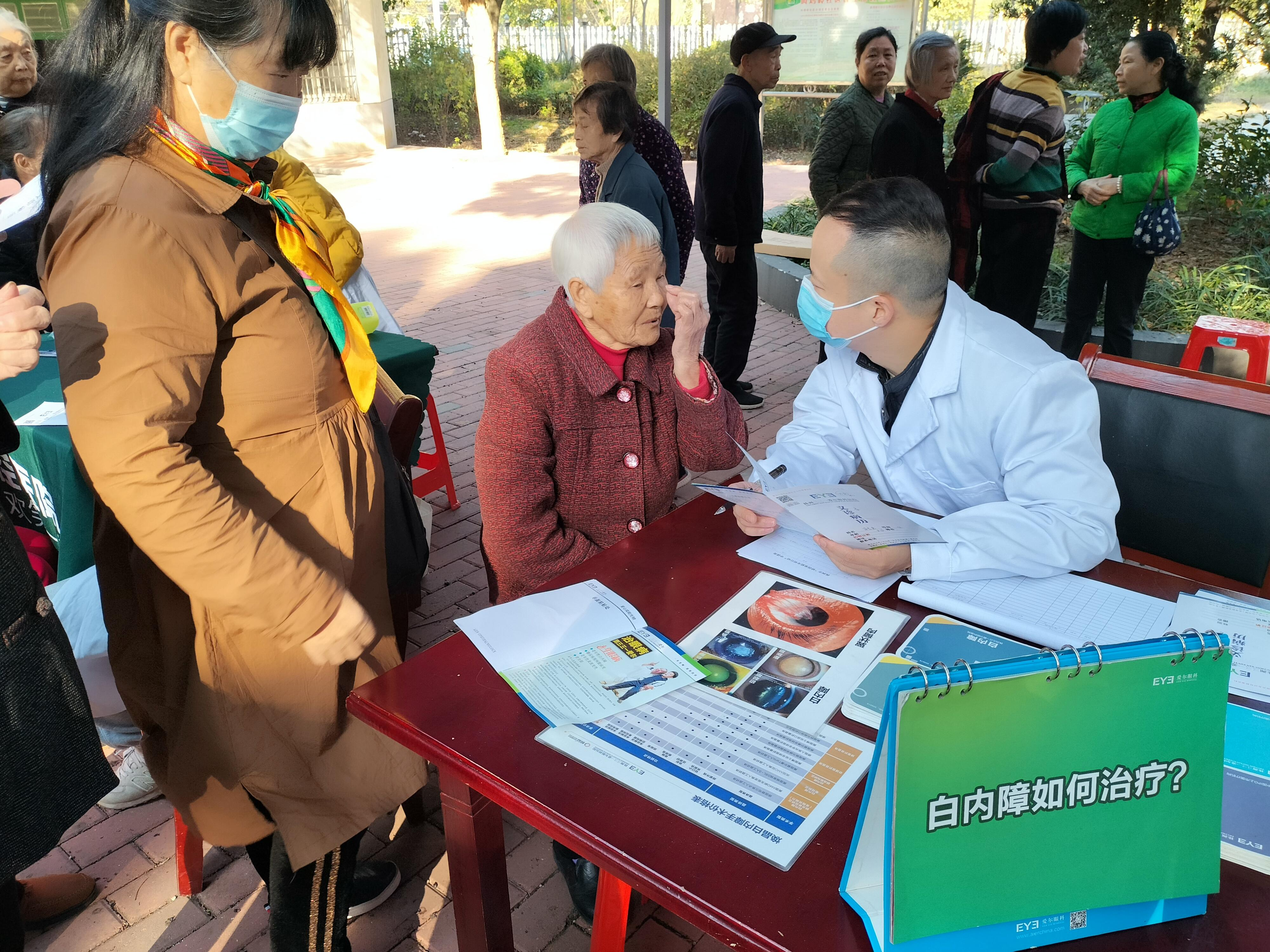 眼睛长期干涩怎么办?白内障患者做手术有什么补助政策?11月26日,石峰区田心街道叫鸡岭社区内,不少老年居民正围着来社区进行健康义诊的医生问个不停。