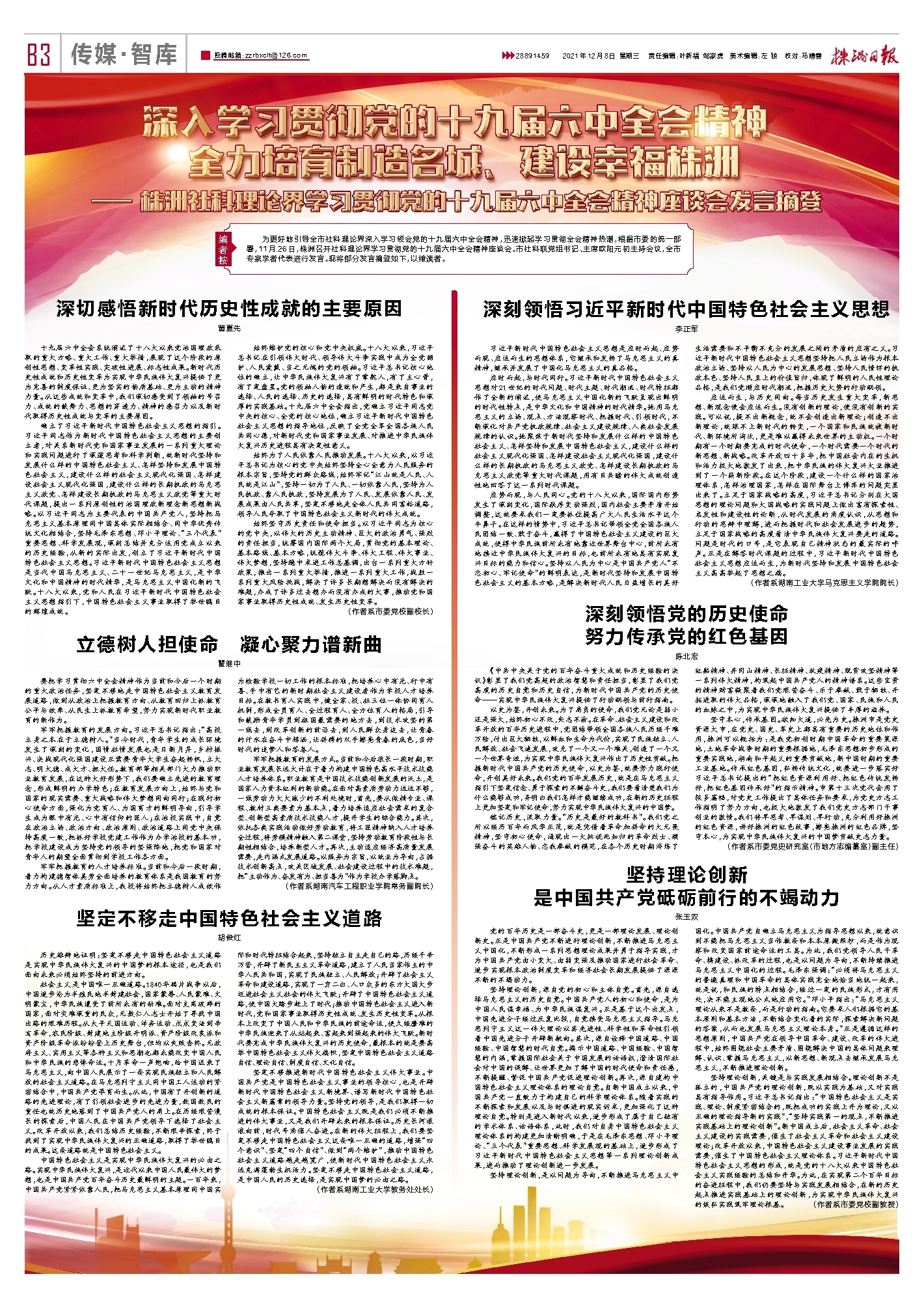 株洲社科理论界学习贯彻党的十九届六中全会精神座谈会发言摘登