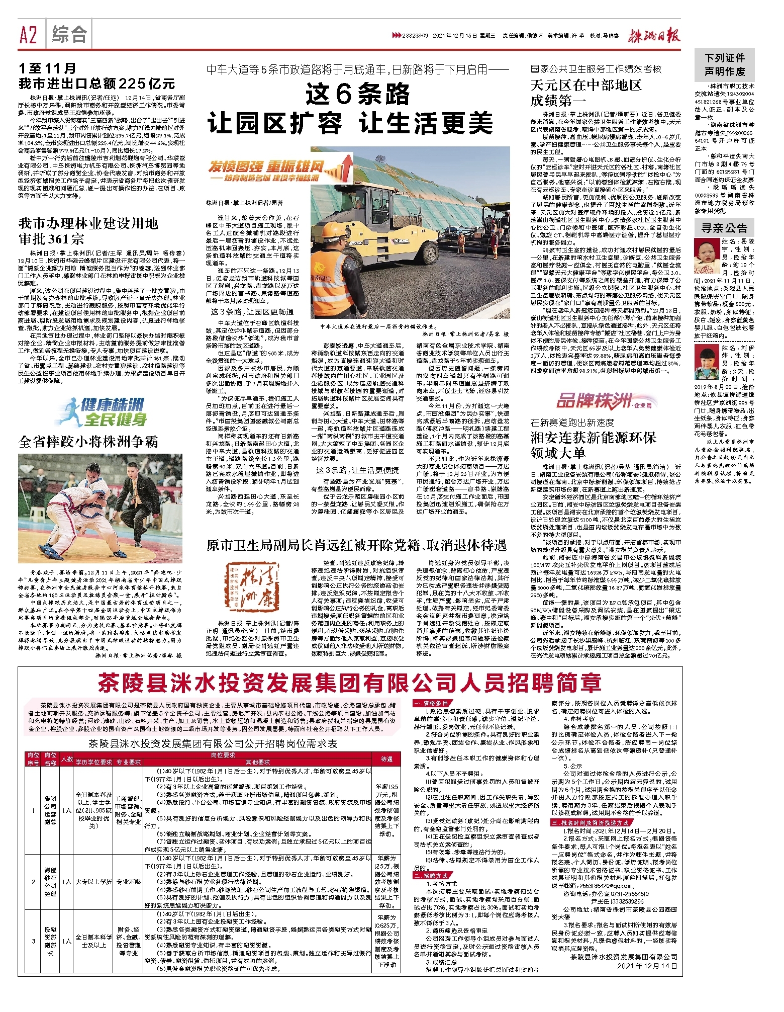 2021年12月15日《株洲日报》