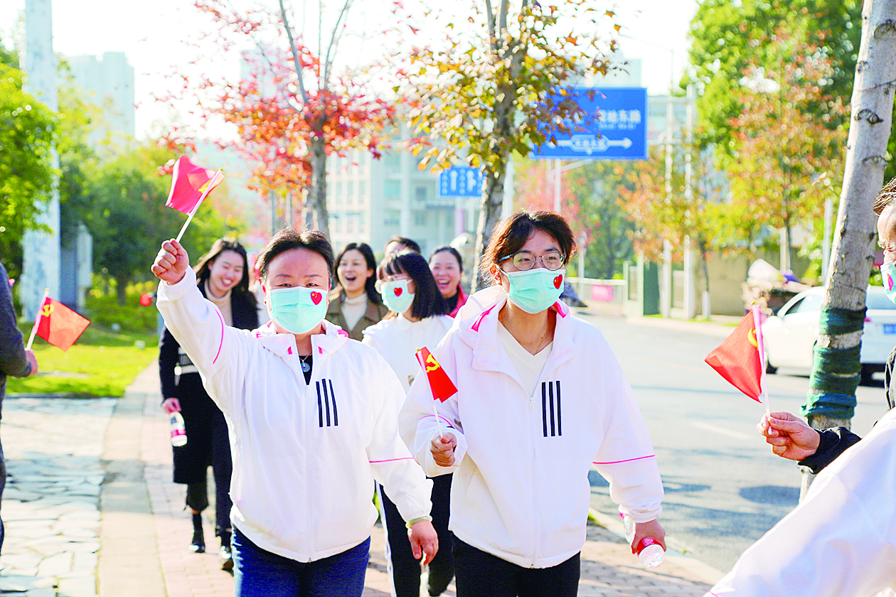 11月30日,芦淞区举行第七届职工健步行活动。参与者从区政府出发,沿临港路一路健行。冬阳灿烂,枫溪港两岸风景如画,鲜艳的红旗迎风飞舞,健行者们笑容璀璨……高歌劲走的队伍构成了初冬暖阳里流动的美丽风景。