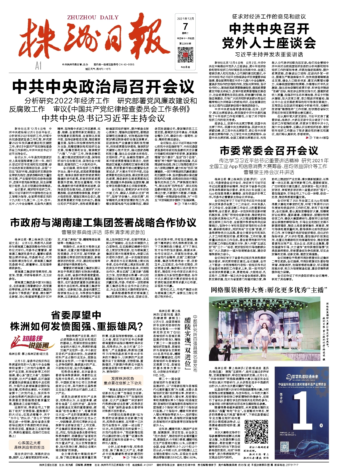 12月5日,省委书记张庆伟在株洲宣讲党的十九届六中全会精神和省第十二次党代会精神,调研产业发展、科技创新等工作时强调,要心系“国之大者”,加强科技创新,壮大产业集群,在打造国家重要先进制造业高地中走在前列,为现代化新湖南建设提供坚强支撑。知株侠注意到,十天前的省第十二次党代会上,张庆伟书记参加株洲代表团讨论时,寄语株洲要发愤图强推动高质量发展,重振老工业城市雄风。