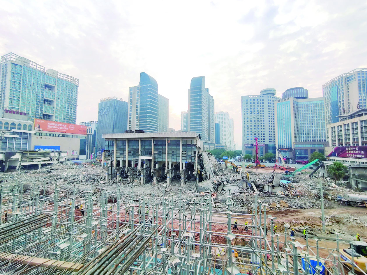 走进项目施工现场,十余台挖掘机和破拆机轰隆作响,有的在清理已拆除部分,有的正将站房凿穿、推倒。
