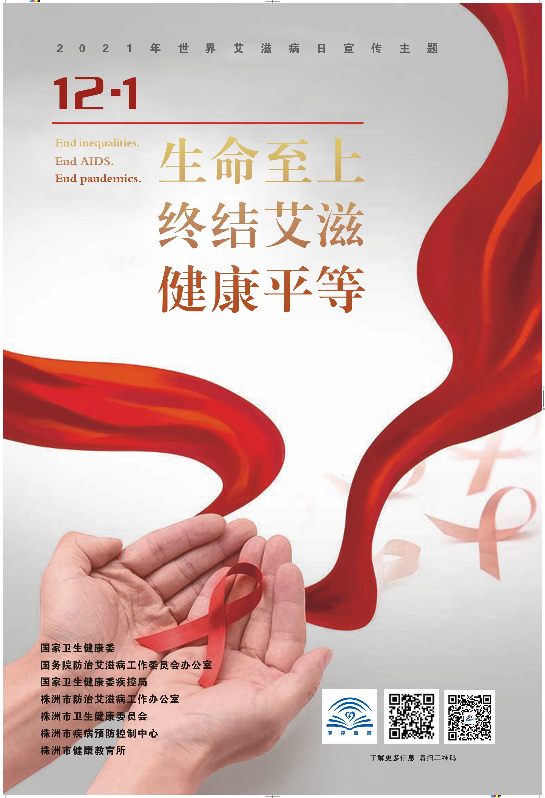 ▶2021年12月1日是第34个“世界艾滋病日”,今年的宣传主题是“生命至上·终结艾滋·健康平等”。