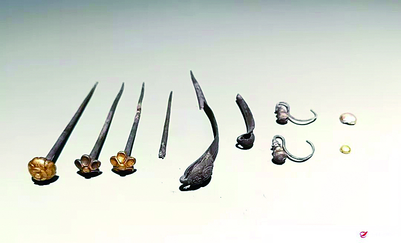 随后,民警前往蔡某家中,查获墓葬中被盗的金银器皿10件。经过省市专家鉴定,这些文物属于明朝时期金银首饰,比较珍贵,有一定的历史研究价值。