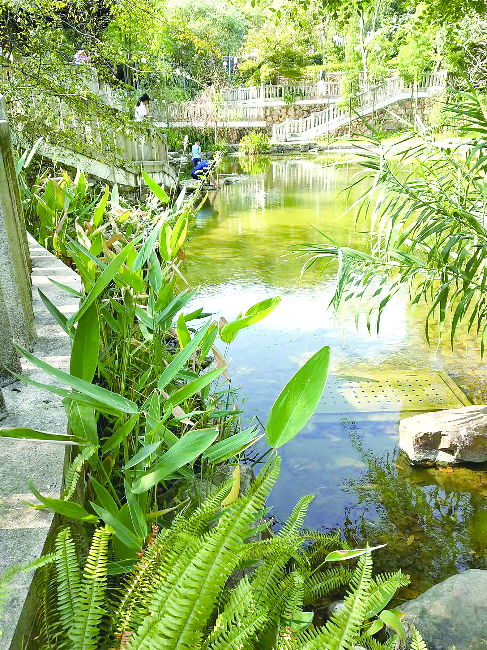 书院建筑随山势布局,石板小径沿弯弯曲曲的小溪铺就,山泉擦着溪中鹅卵石表面流过,像给鹅卵石上了一层包浆,看起来玲珑剔透。在我印象里,童年时溪边的石板路没这么规整,溪底的鹅卵石也没这么匀称,水里却是有鱼虾的,寸把长,小指头大小,很难捉到,一见人影便钻到石缝里了;核桃大的山螃蟹倒是很笨,但不好下手,小伙伴们谁不曾被它钳过?破皮出血钻心地痛,大家只能看着它们在小溪里横行。