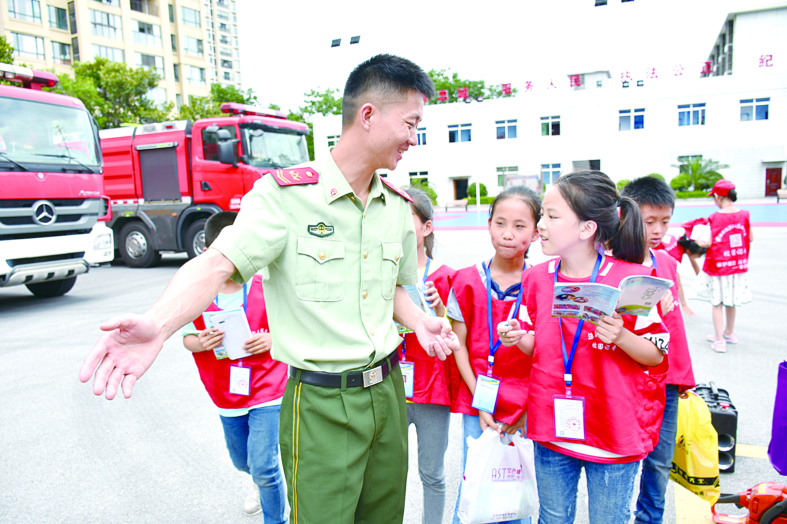 ▲校园记者走进天元区消防大队。 彭慧洁 摄