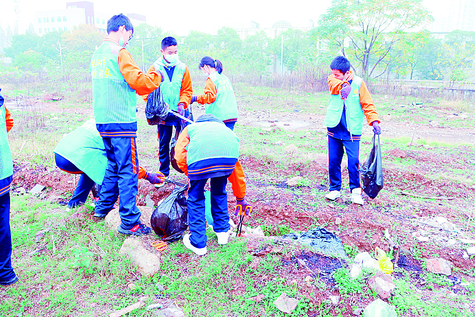 学生们清理湘江风光带里的垃圾。 通讯员供图