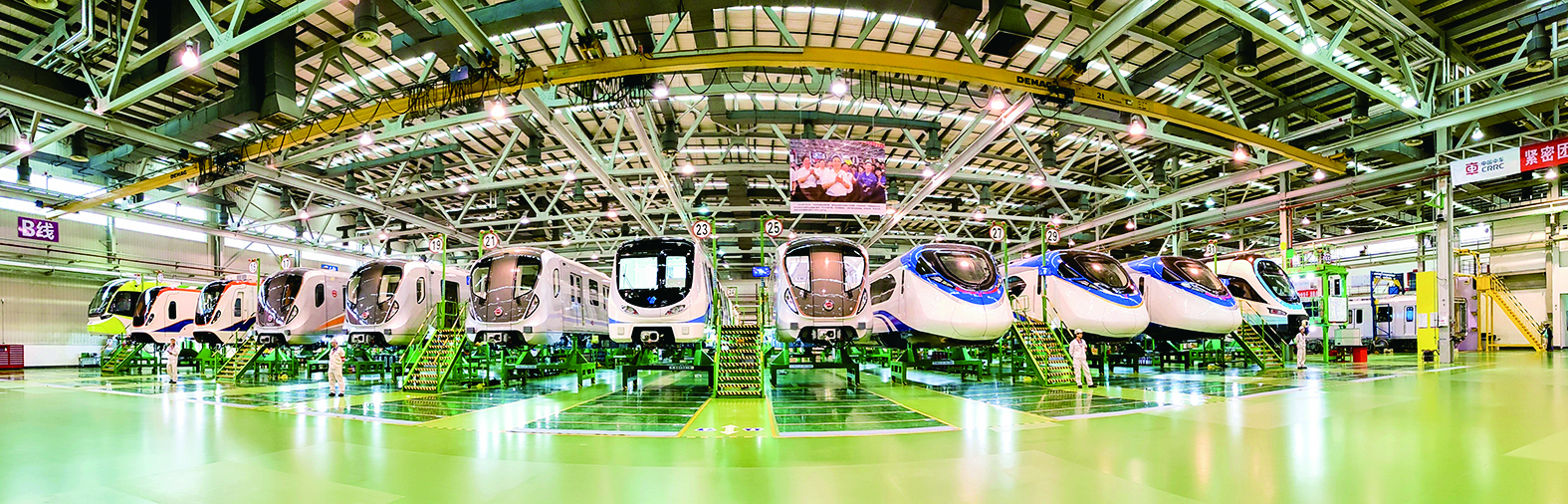 中车株机城轨事业部,一列列城轨车辆整装待发。