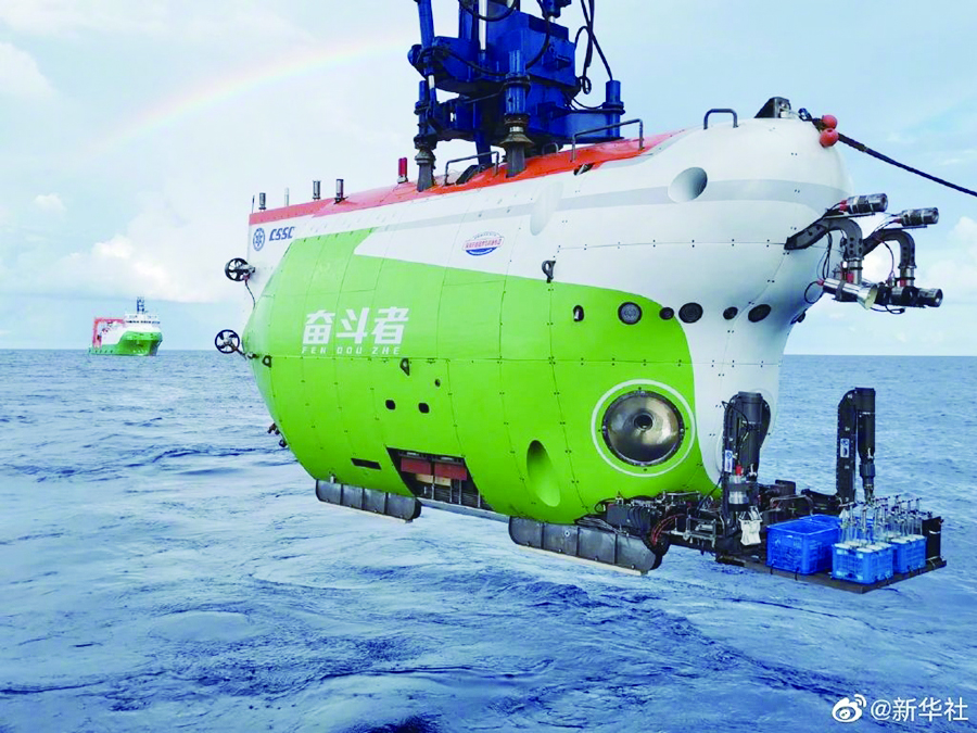 图为“奋斗者”号全海深载人潜水器。