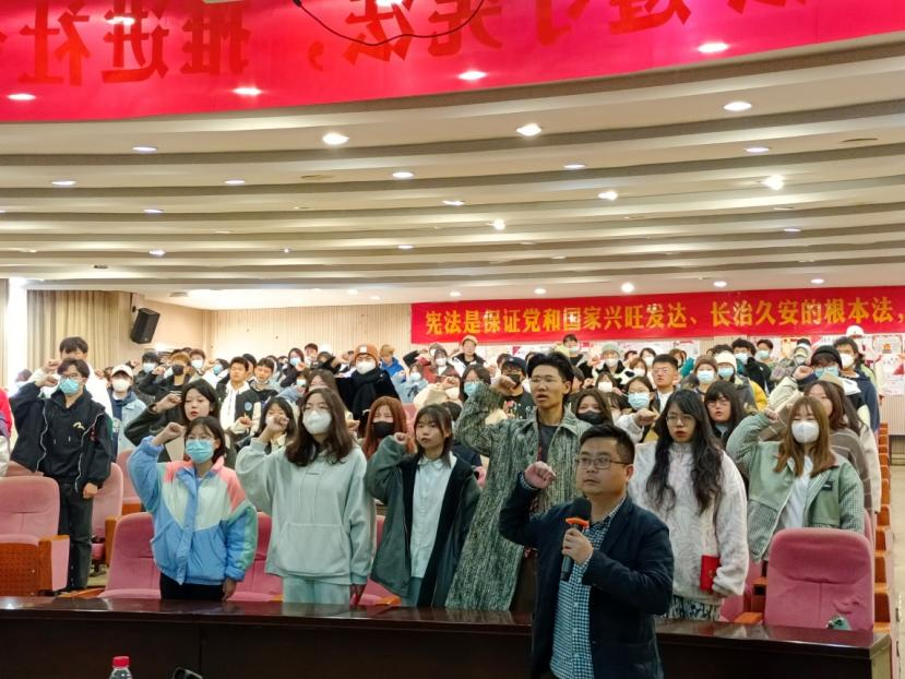 12月4日是第八个国家宪法日,湖南工业大学包装设计艺术学院组织300余名师生进行守法宣誓。