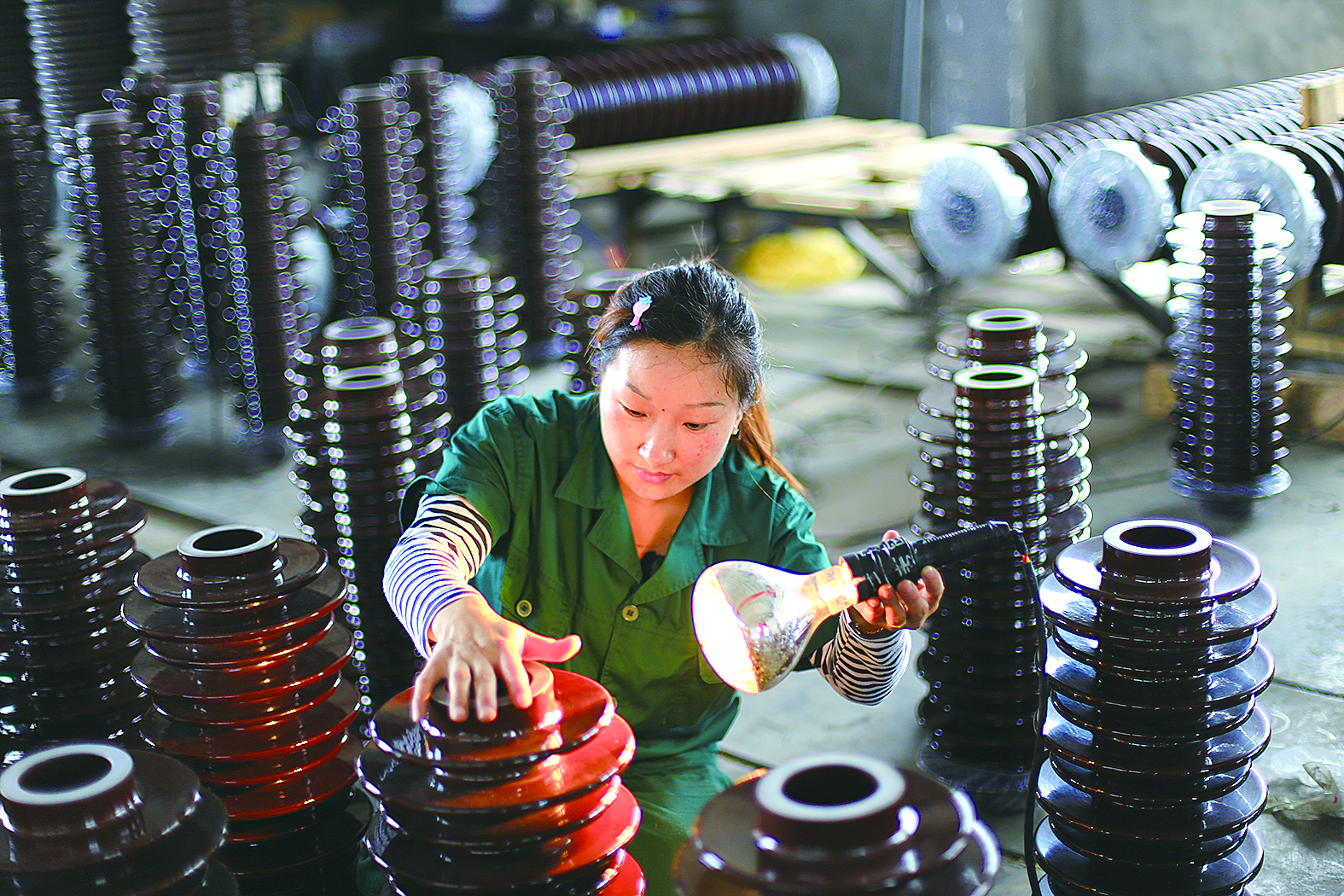 华鑫电瓷车间内,工人们正在抓紧生产。 株洲日报·掌上株洲记者/廖喜张 摄
