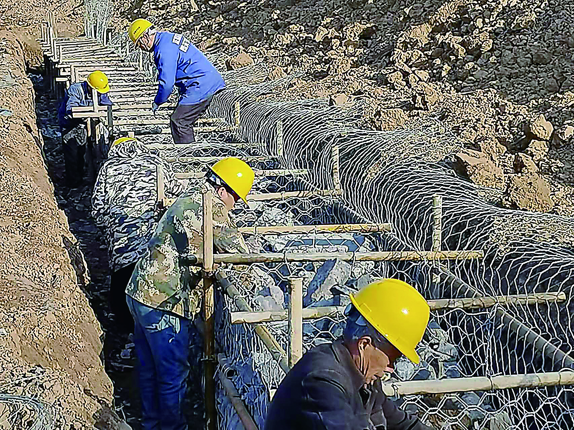 在醴陵市泗汾镇铁水二期治理工程施工现场,施工人员忙着在河堤上铺设格宾网,并加固游步道。该工程去年11月份开工,工程总投资为4956万元,需要培厚堤防3000米,整治岸坡23.42千米,并在沿途新建下河踏步等便民设施。