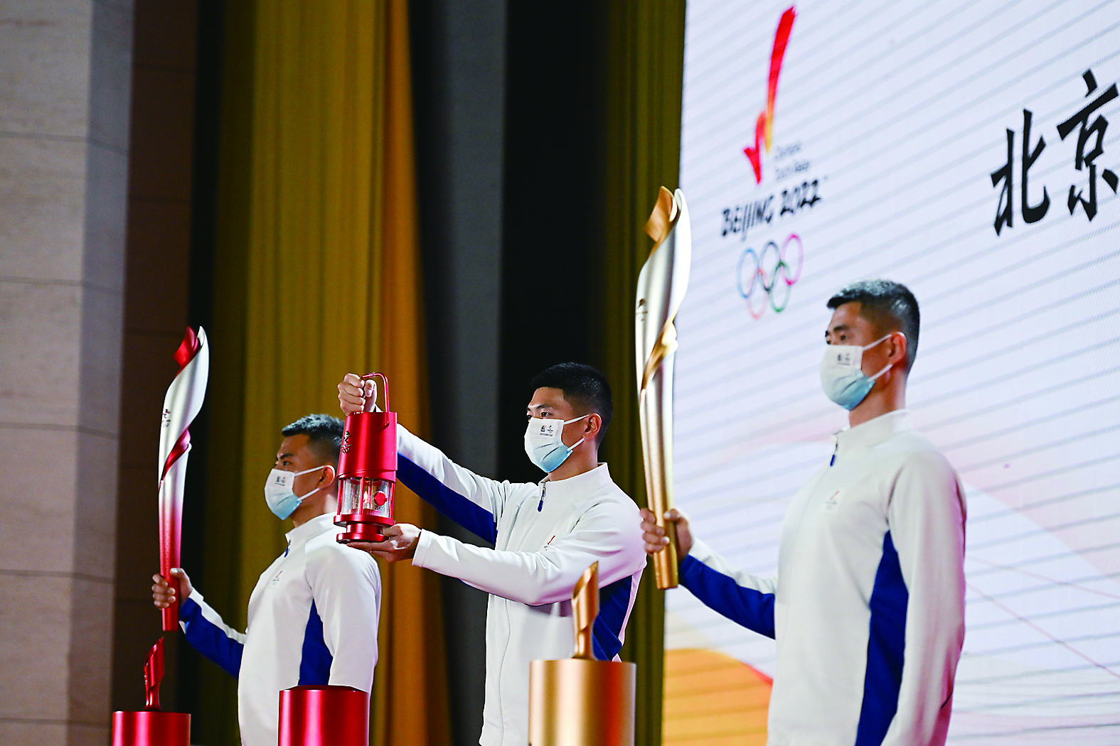 12月7日,北京冬奥会火种首场赞助企业展示活动在北京中国石化总部举行,现场展示了奥林匹克火种、北京冬奥会火种灯、火炬和火炬手制服。 新华社记者 鞠焕宗 摄