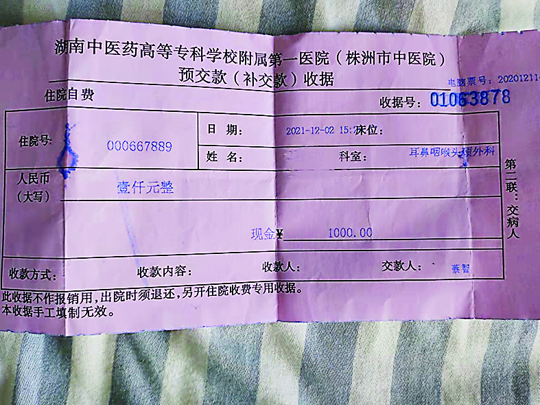 “我没交过这个钱。”马女士的丈夫随即向护士解释。
