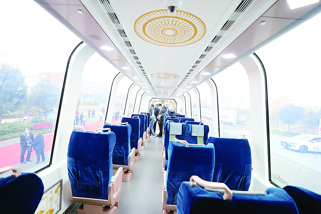 ▶全景观光山地旅游列车内景。 株洲日报·掌上株洲记者/易翔 摄