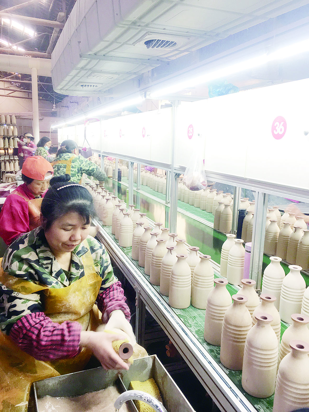 国友陶瓷厂生产线上,工人生产忙。 株洲日报·掌上株洲记者/刘毅 摄