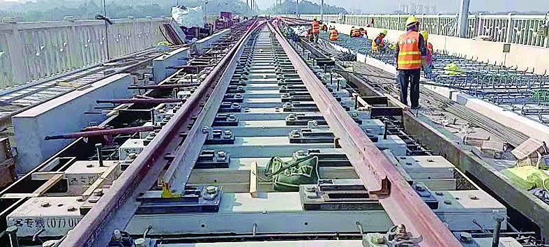 今年夏天,赣深铁路道岔铺设现场(资料图)。