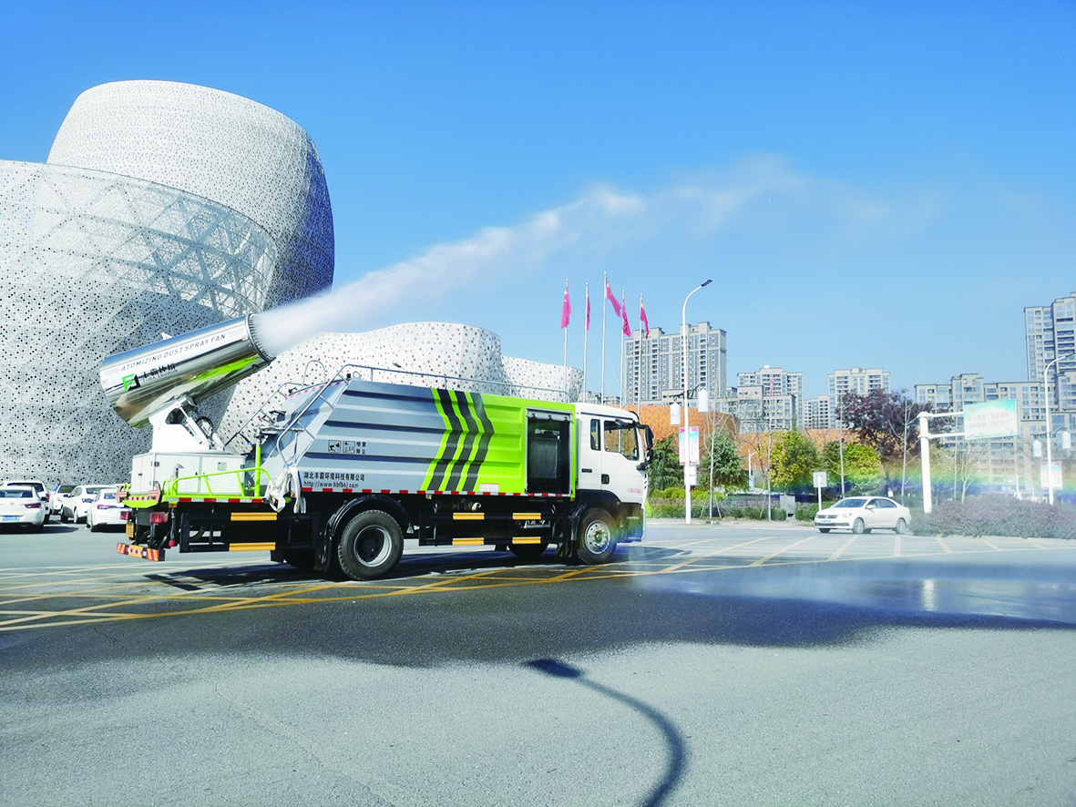 12月7日,一辆驾着“大炮”的大型车缓缓行驶在醴陵市城区主干道,大量水雾从“炮口”喷出,有效抑制了道路扬尘。这是该市首辆多功能抑尘车,其蓄水量18吨,喷雾机最大射程80米,并能进行320度旋转喷雾,覆盖面积约2800平方米。据介绍,该多功能抑尘车每天作业不少于4小时,通过高速流动的水雾与空中粉尘、灰尘及其他颗粒物接触并结合,在重力作用下加速下沉,达到快速降尘目的,实现清洁净化空气。