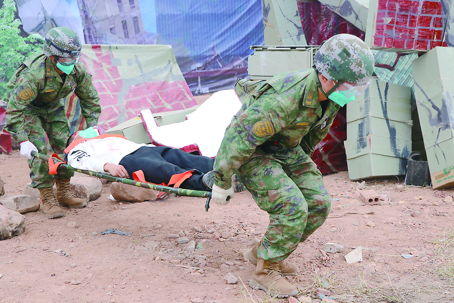 12月10日,在越南广宁省芒街市,中方参演分队转运地震伤员。 新华社发(魏飞摄)