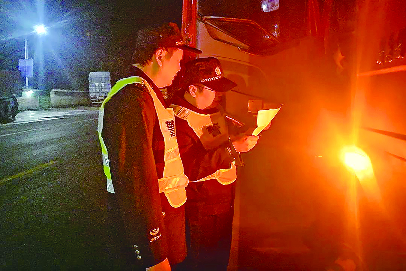 醴陵警方夜查烟花鞭炮运输车辆。通讯员供图