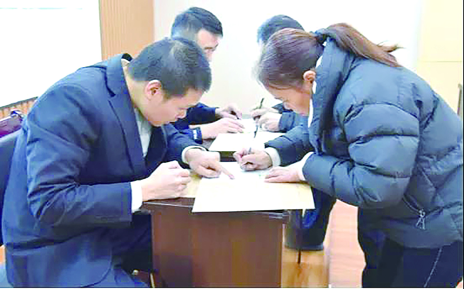 执行兑付会现场,农民工签字领取工资。 通讯员供图