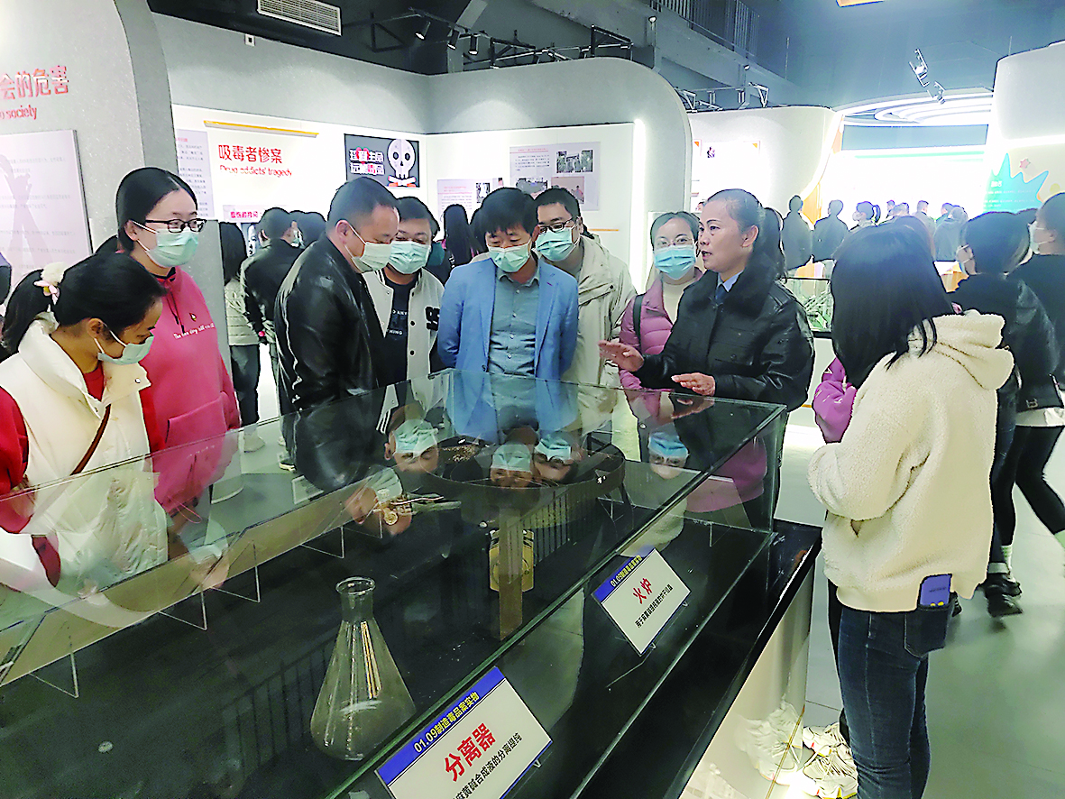 “这次教育不仅给我敲响了警钟,同时也让我强化了对身边人宣传禁毒防毒知识的责任意识。”学习结束后,市优化营商环境协调事务中心科员龙杨表示,此次活动很有警示教育意义,让他深感震撼。图为大家现场聆听讲解员介绍制毒工具。