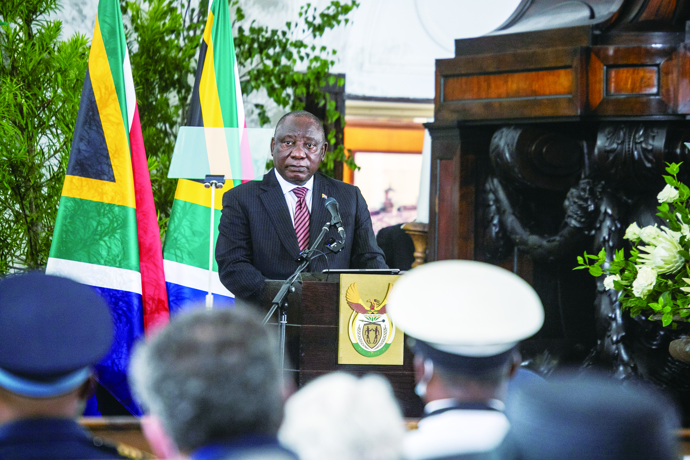 12月12日,在南非开普敦,南非总统拉马福萨在为前总统德克勒克举行的追悼仪式上讲话。
