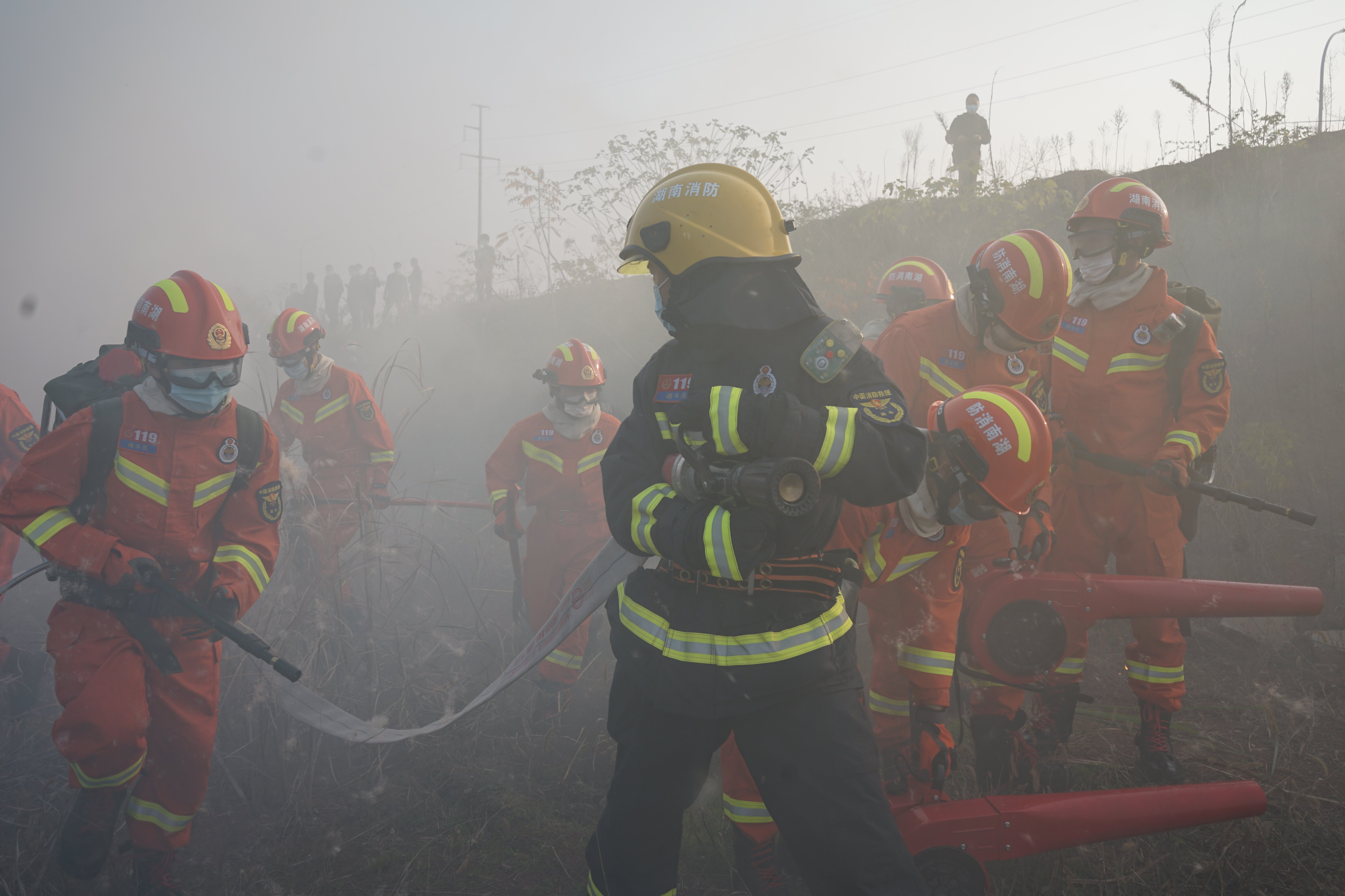 别紧张,这只是株洲经开区举行的2021年秋冬季森林防灭火联动实战演练。此次演练,以模拟发生森林火灾为背景,对应急响应、力量集结、灭火救援、被困人员救治、控制疏散群众、后勤保障等进行演练,全面检验相关单位应急联动能力和扑救森林火灾的技战术能力,检验森林防灭火指挥部统一指挥、综合调度方面的能力,促进各单位及救援队伍对森林防灭火应急处置流程的熟练掌握,筑牢森林安全“防火网”,以备实战。 图为演练现场。