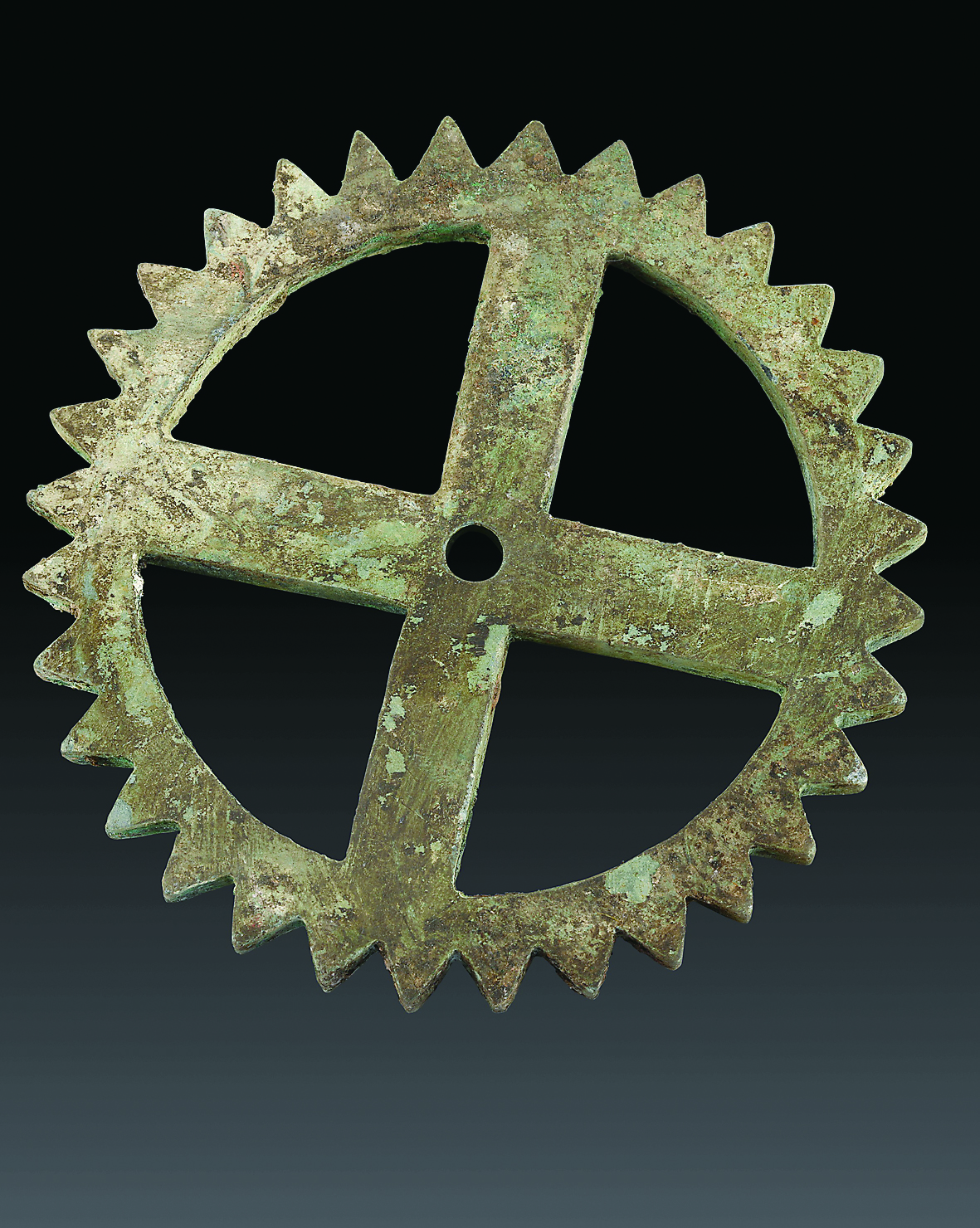 江村大墓外藏坑出土的铜齿轮(2020年5月7日摄)。