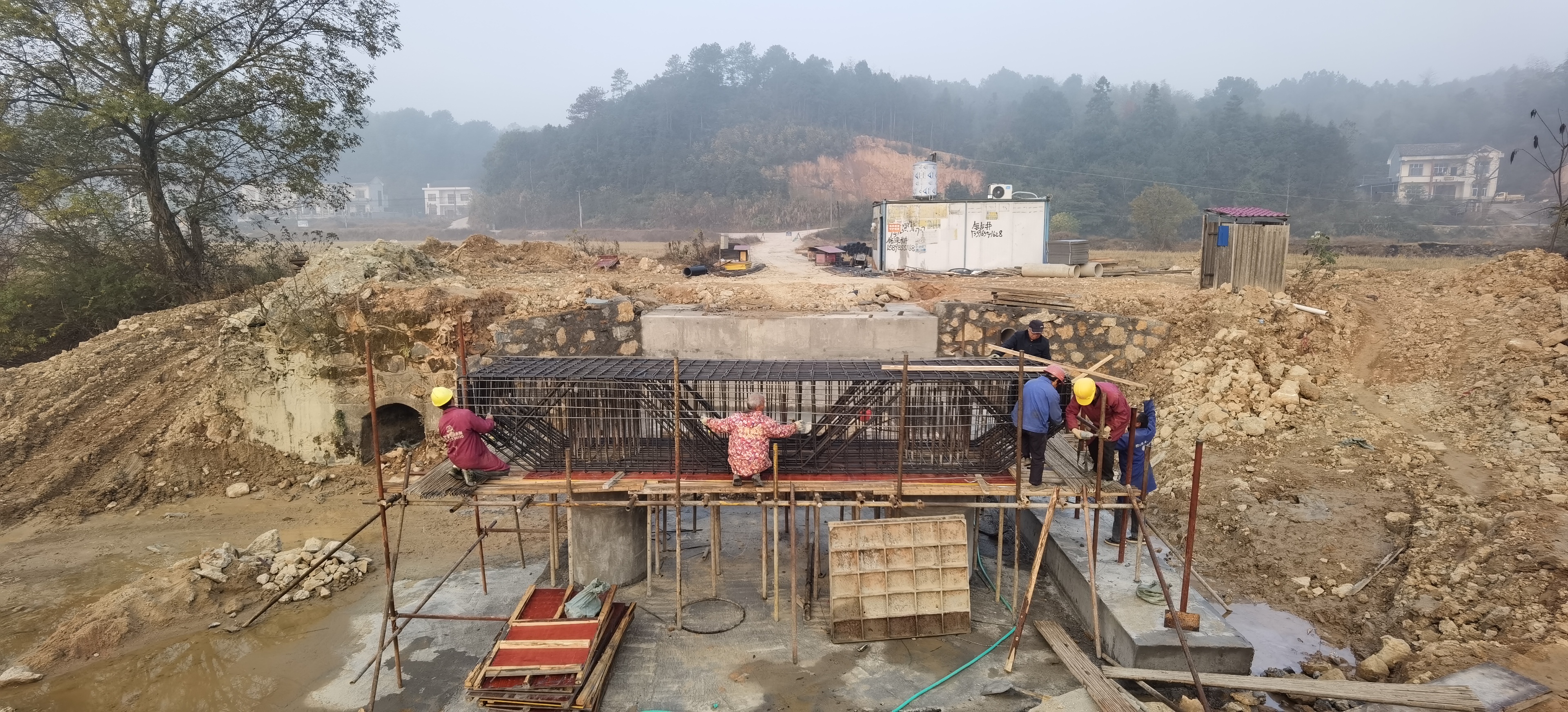 来到工地,建设势头火热,桥墩浇筑已经完成,六七名施工人员有序作业,为桥面浇筑做准备,施工进度比较顺利。按照目前的进度,春节前,应该可以实现通车了。