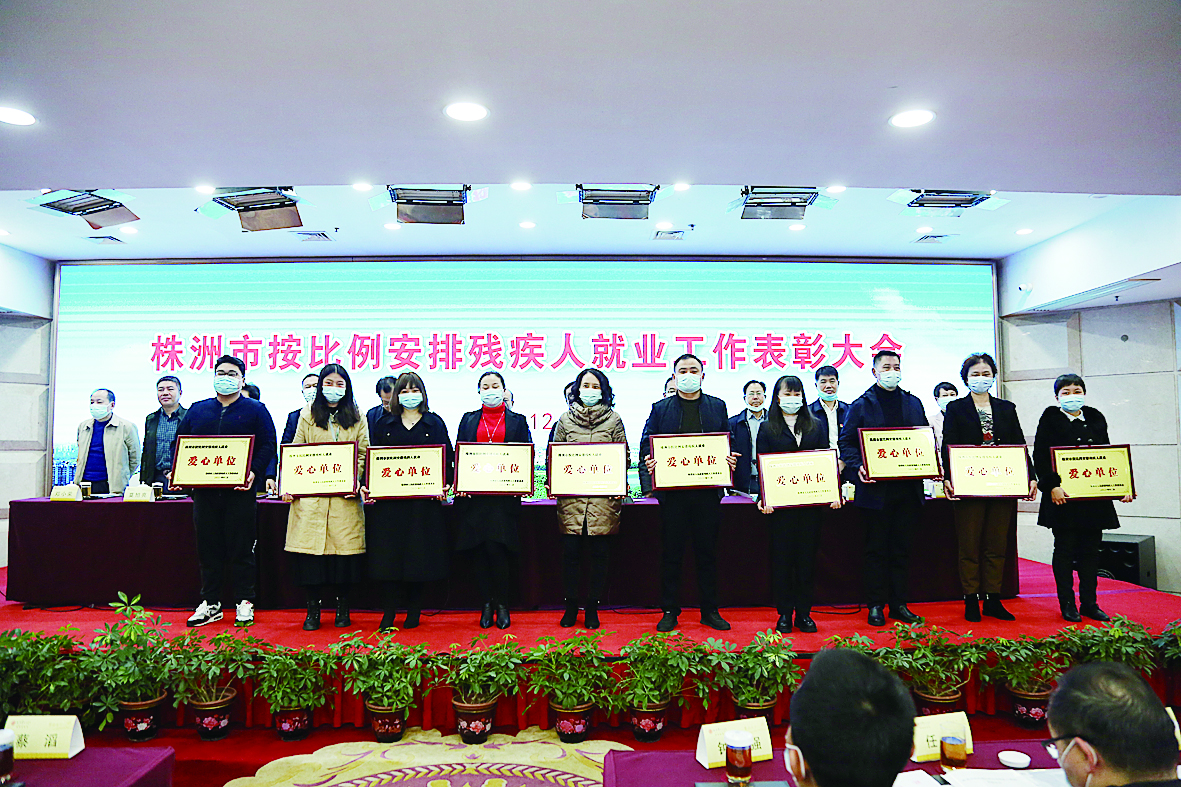 表彰会上,市政府党组成员罗绍昀表示,市委、市政府高度重视残疾人就业工作,将残疾人职业技能和实用技术培训纳入“民生100”项目,组织残疾人专场招聘会,扶持残疾人自主创业,全面落实按比例安排残疾人就业,众多爱心企业积极承担社会责任,我市残疾人就业支持体系日趋完善,正是建设幸福株洲的生动实践。