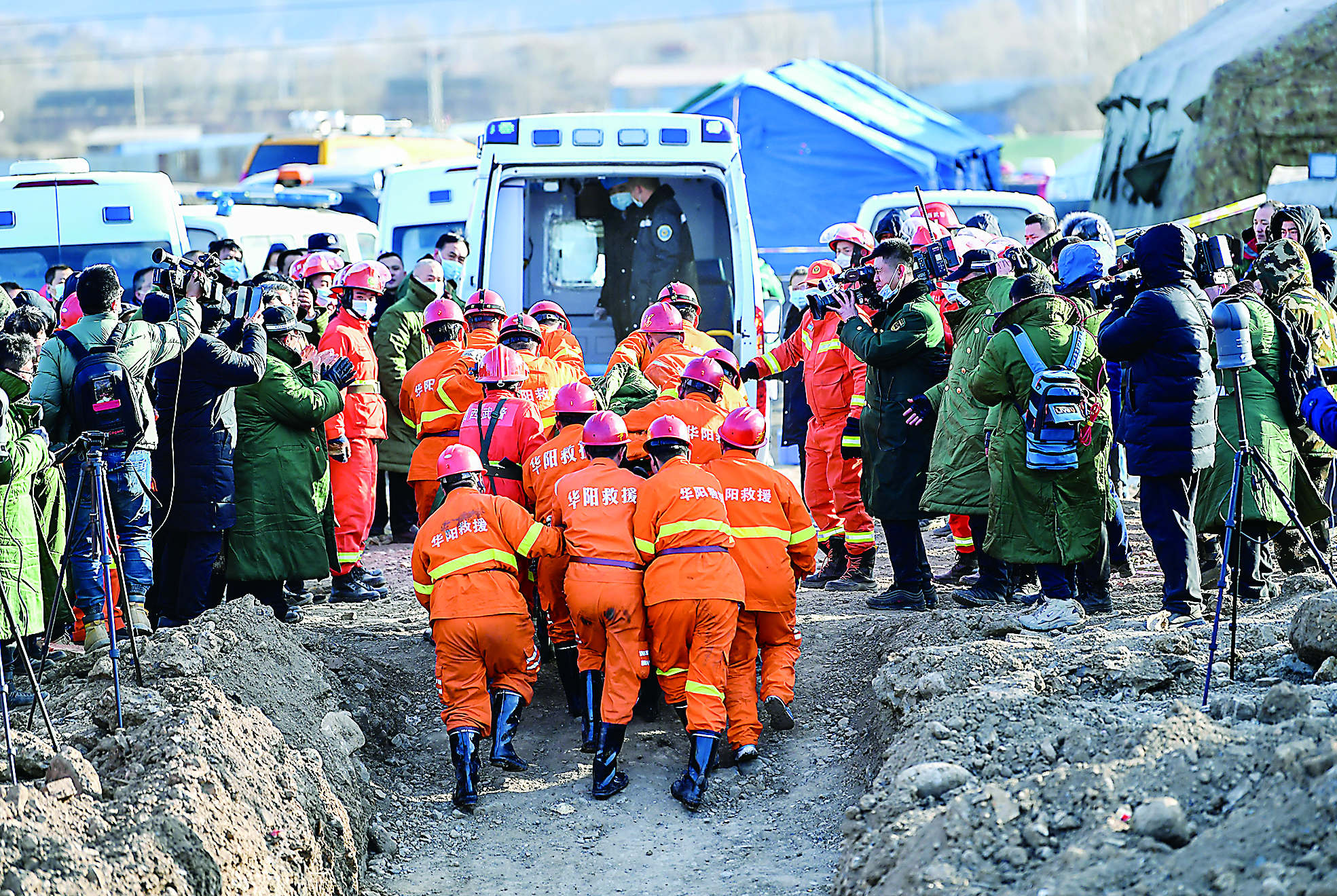 12月17日在山西省孝义市西辛庄镇杜西沟村拍摄的救援现场。 新华社记者 曹阳 摄