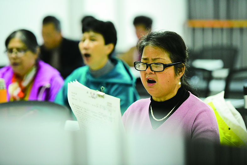 病友们在认真地排练舞蹈。佳佳艺校的舞蹈老师每个星期都会对花木兰舞蹈队提供免费指导。