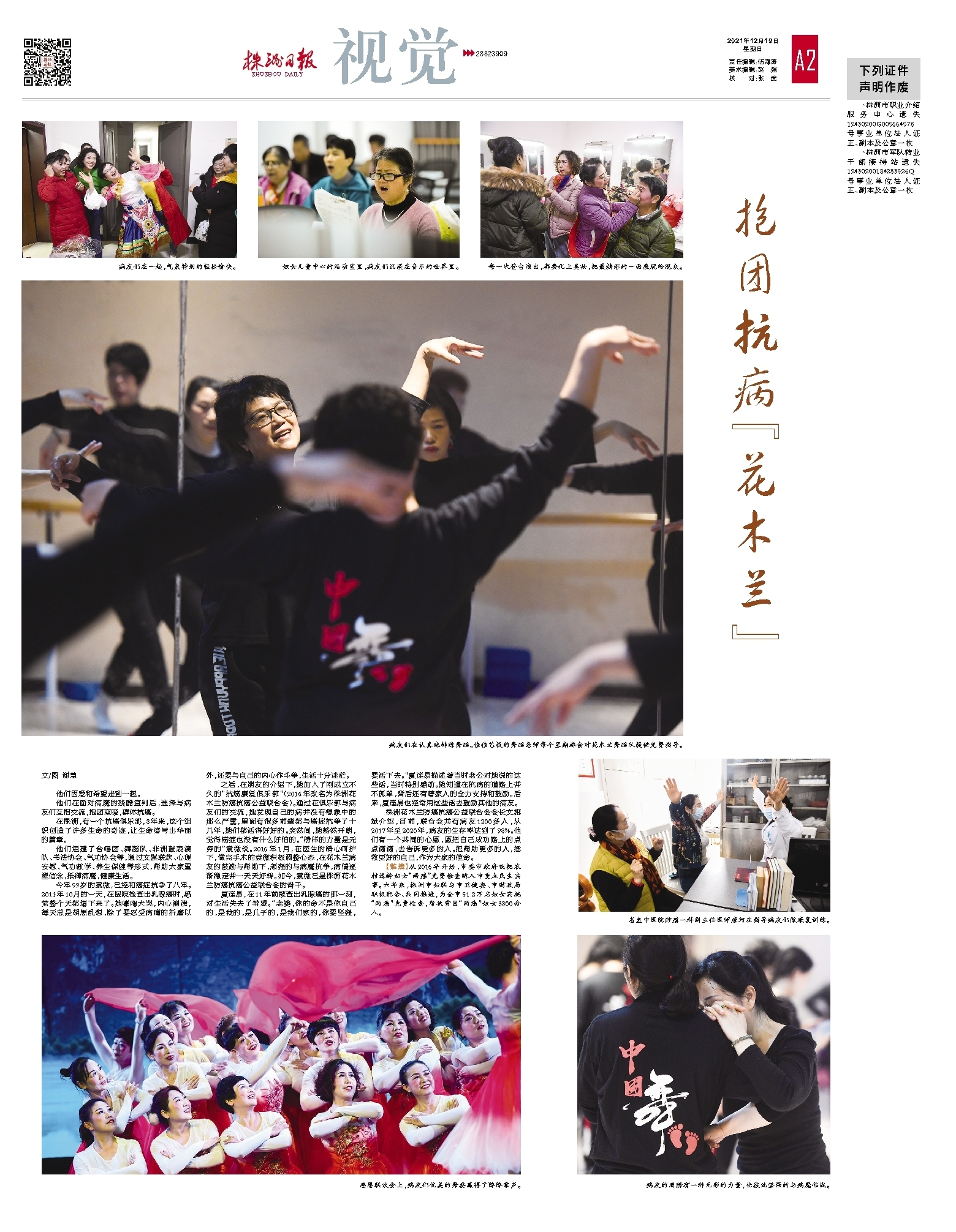 他们组建了合唱团、舞蹈队、非洲鼓表演队、书法协会、气功协会等,通过文娱联欢、心理安慰、气功教学、养生保健等形式,帮助大家重塑信念,抵御病魔,健康生活。