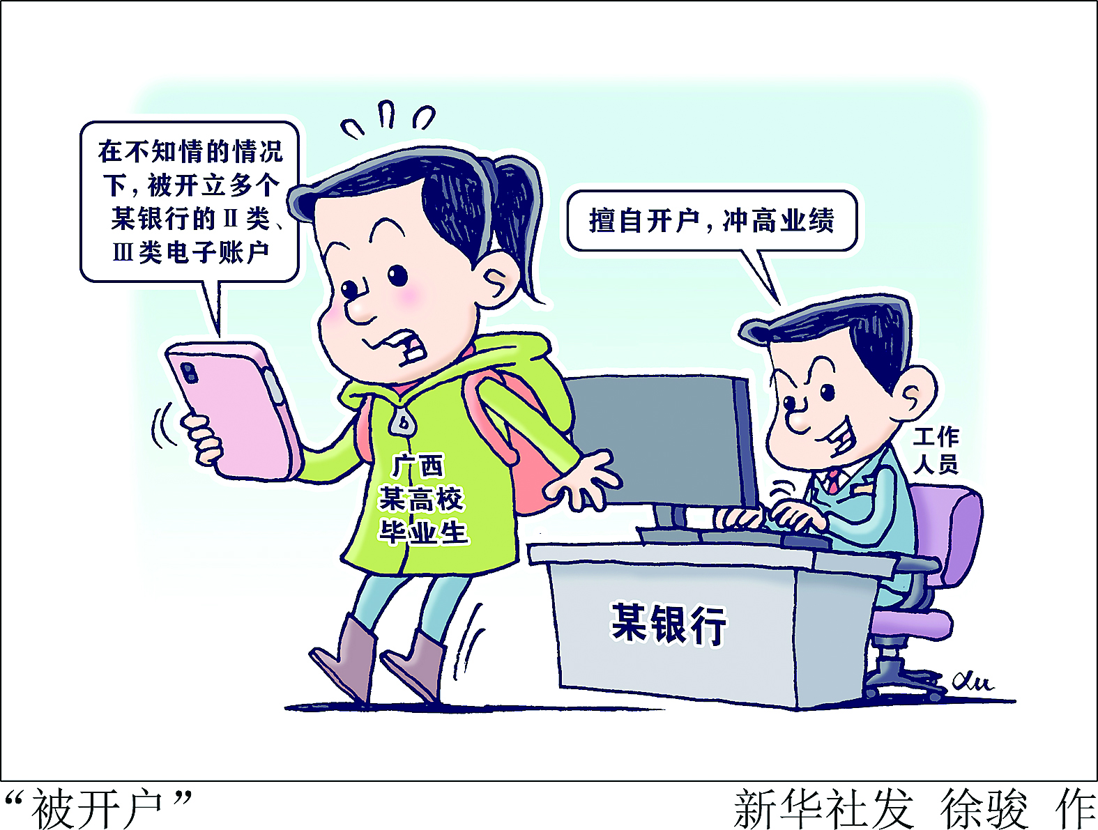 漫画:“被开户” 新华社发 徐骏 作