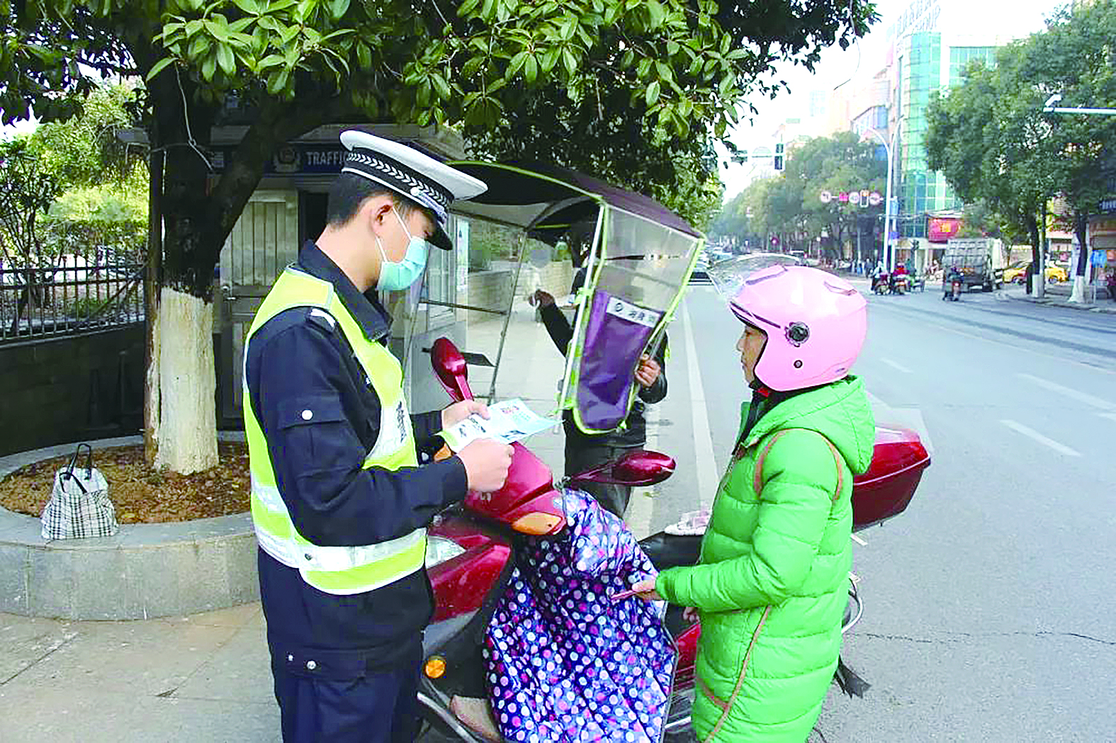 株洲日报·掌上株洲讯(记者/沈全华 通讯员/罗继强)12月15日,茶陵县交警大队在县城三角坪路段开展“戴帽工程”专项整治行动,对摩托车、电动车(简称摩电)驾乘人员不戴安全头盔、加装遮阳伞以及摩托车涉牌涉证等交通违法行为予以查处。
