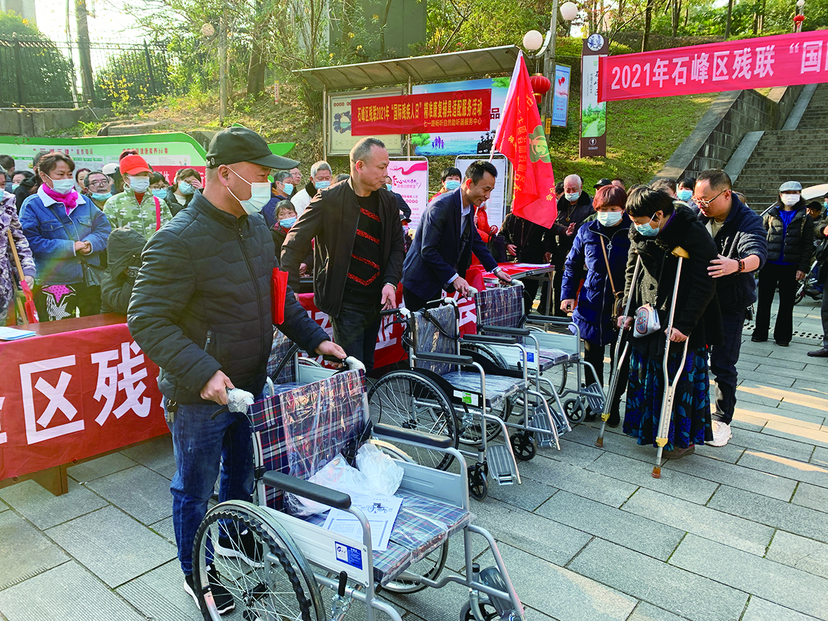 帮助残障人士改善生活条件,提高生活质量。12月22日上午,石峰区残联开展以“包容·无障碍·可持续”为主题的辅助器具捐赠活动,在石峰公园为数百名重度残障人士发放了轮椅、盲杖、四角拐杖、坐厕椅等残疾人辅助器具。相关部门同时在现场开展无障碍改造、残疾人两项补贴、残疾人社保、求职等近年来出台的帮扶残疾人各项政策为主要内容的咨询服务活动。
