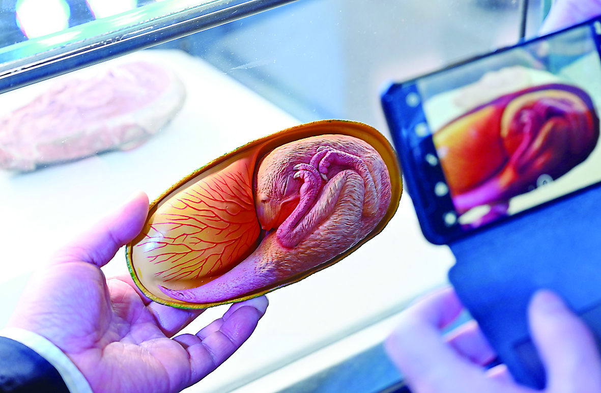 12月22日在福建省科技馆拍摄的恐龙蛋化石模型。新华社发