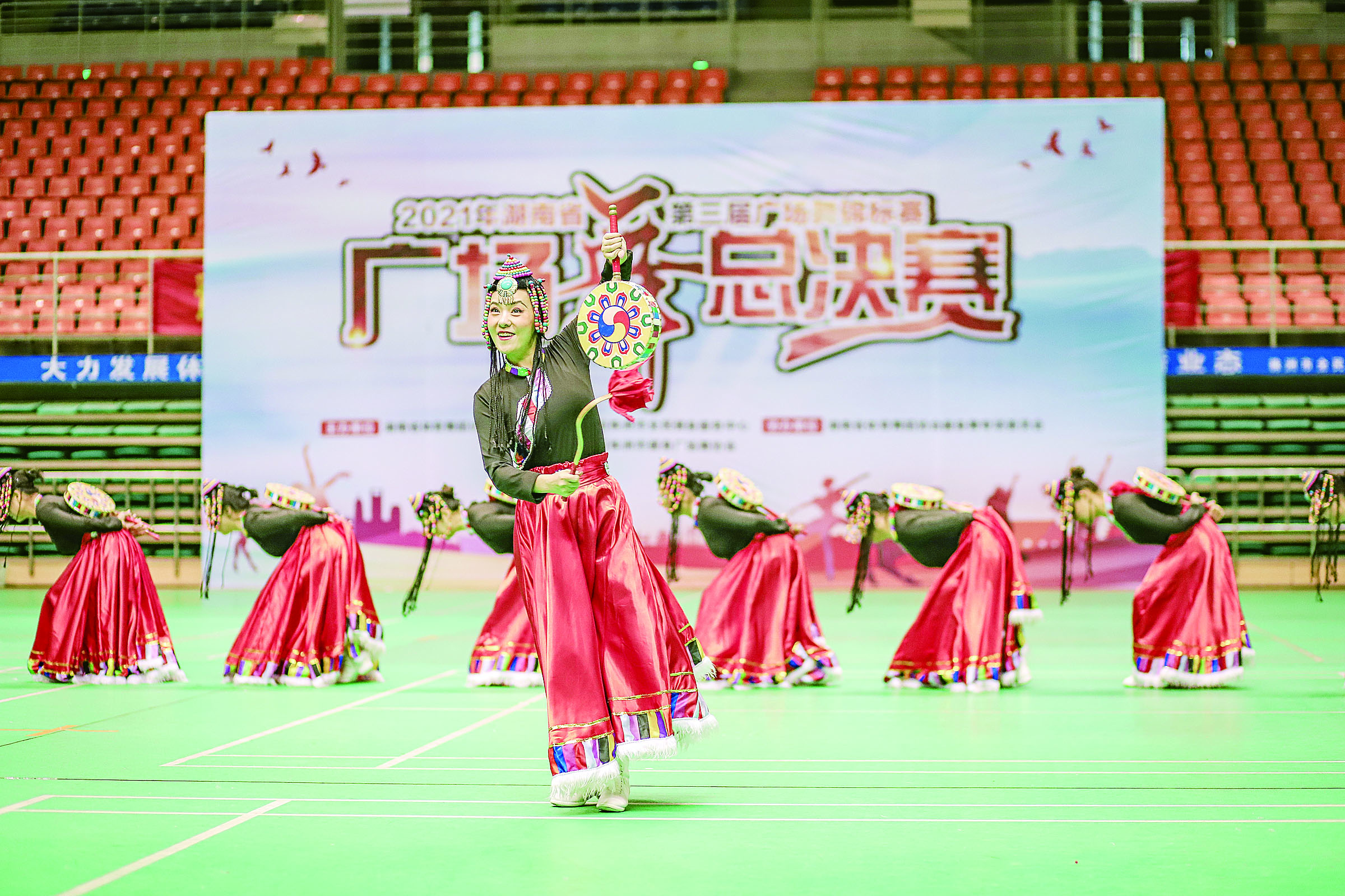 12月25日,2021年湖南省第三届广场舞锦标赛总决赛在市全民健身服务中心体育馆开幕,全省各市州20支代表队320名舞者齐聚一堂,同台竞技。该赛事由省体育舞蹈协会主办,是我省目前规模最大、级别最高、受众最多、影响最广的广场舞赛事。 株洲日报·掌上株洲记者/温琳 摄