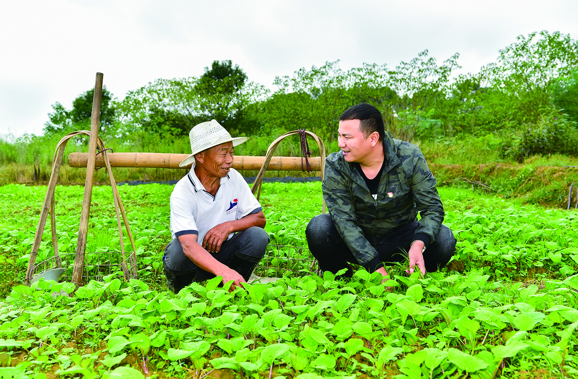 2020年,南洲镇干部走访湘东村脱贫户张方汉,在菜地里询问种菜收成。张豫兴 摄